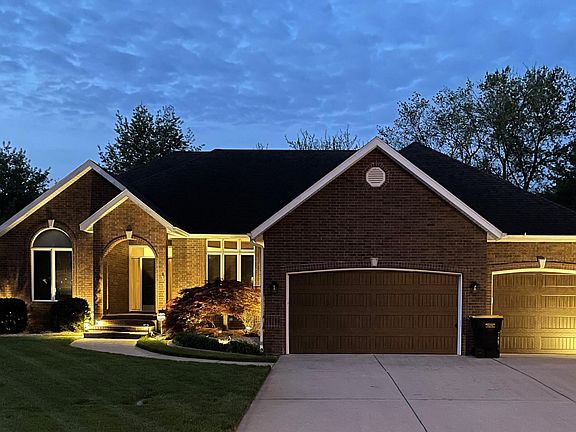 Quality built, all brick, walkout basement home conveniently located south of Justice Jewelers! Prepared to be impressed with this beautiful home from the moment you walk in the door. The formal dining is very open to the living room with high ceilings & hardwood floors, there is a gas fireplace w/mantel, trayed ceiling accents, 6 panel solid wood doors throughout and surround sound. The kitchen is updated with granite countertops, new fixtures, replaced stove, dishwasher, refrigerator stays and updated tile back splash. There are new light fixtures in living & dining room which leads to the screened in upper deck. The laundry room is off the kitchen with utility sink. The master bedroom is oversized with room for a sitting area and a wonderful master bath, complete with a corner jetted tub, dual sinks, granite counter tops, walk-in shower, and large walk-in closet. The other 2 bedrooms upstairs are a split bedroom plan with a full bathroom. Downstairs are 3 large bedrooms, a fabulous entertaining area with a large living area, wood burning inset, full wet bar complete with refrigerator and a place for a game table, plus new carpet throughout. The pool table and accessories will stay with the home. There is also a workshop that leads to the lower covered patio, a hot tub, and a private backyard with mature landscaping. The screened in patio off the kitchen is perfect for your morning coffee, or to unwind after a long day. It leads to a good size deck, overlooking the backyard. The home is situated on a cul-de-sac, has outdoor home lighting, full sprinkler system, and an oversized 3 car garage. The roof was replaced 8 years ago, and gutters. Call for your private showing today!