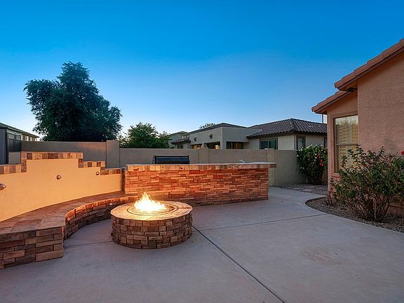 Won't last long, located in highly desirable and safe south Gilbert in Marbella Vineyards neighborhood. Home has just been updated. Gorgeous 4 bedroom, 2 bathroom, single-level (ranch style) home located in Marbella Vineyards. Close to Wilson Way Park, the Bridges, Gilbert Regional Park, and Seville Golf & Country Club. Minutes from San Tan Village and Queen Creek Marketplace. Near A+ school districts. Classic split floor plan with stunning high ceilings, shutters and wood blinds throughout. Large eat-in kitchen with beautiful modern waterfall island and updated backsplash. Exterior boasts built in outdoor grill and BBQ (perfect for entertaining), a custom iron front door, covered porch and extended covered back patio, 3 car garage with overhead shelving, cabinets & shop work benches, extended driveway, side yard pad with double gate, custom window shade screens, and spacious backyard. Private backyard with no two story houses around. Extra large main bedroom features vaulted ceiling, large bay window, walk-in closet. Bedroom 2 includes a Stone Creek queen murphy bed. Bedroom 3 & 4 have programmable door locks; great for securing home office documents. Large closets in every room, three walk-in. Hallway desk and cabinetry provides great workspace for the family. New roof, new paint (exterior in 2016, interior in 2021), new countertops, lighting, fans, flooring, cabinets, tile and backsplash throughout. No stairs! Indoor laundry room and sink. Several children's playgrounds and parks within walking distance. Popular Gilbert disc golf course in neighborhood. Plenty of trails for walks. Renter pays for utilities. Dogs allowed, dependent on breed (dog door installed in home currently).