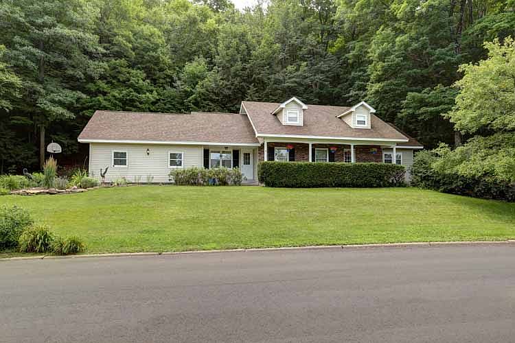 Price reduced from $219,900 to $209,900!!! Amazing waterfront home with boat access to Jim Moore Creek across the road, leading to the WI River. Stunning landscaping, mature trees, and deck area seated on 1.64 acres. The home features an updated kitchen with new laminate counters, updated flooring and new stainless appliances, a spacious living room / den with wood burning fireplace, main level master suite with bath & walk-in closet, and main level laundry. The A/C, furnace, water heater, and roof have all been replaced within the last 5 years. This property includes the water frontage area across the street, please see the map (in documents) for additional information. The home also features mahogany trim throughout the living room and dining room area. The upstairs features a spacious hall leading to 3 large bedrooms, each with stunning natural views, an upper level full bath with dual vanity, and a walk-in attic / storage space. The lower level offers additional storage and provides potential for a future game room / rec room with a bar area, perfect for entertaining. The walls have been started and are awaiting your finishing touches. Overall, this home combines functionality with charm and character, and offers breathtaking views with the stunning water frontage and surrounding woods, offering a private, country feel just outside of the city.