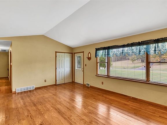 Enjoy peaceful living in this spacious 3-bedroom, 1-bath ranch on 1.44 acres. The eat-in kitchen features gorgeous oak cabinets and built-ins, complemented by hardwood floors and a stone fireplace in the living area. A bright 20x12 sunroom is perfect for relaxing or entertaining. The laundry area is located in the 45x27 unfinished basement. Outside, there’s a carport, shed, and an impressive 41x31 heated garage with a 10-foot door—ideal for projects or storage. Newer roof and hot water tank make this a solid home with tons of potential!