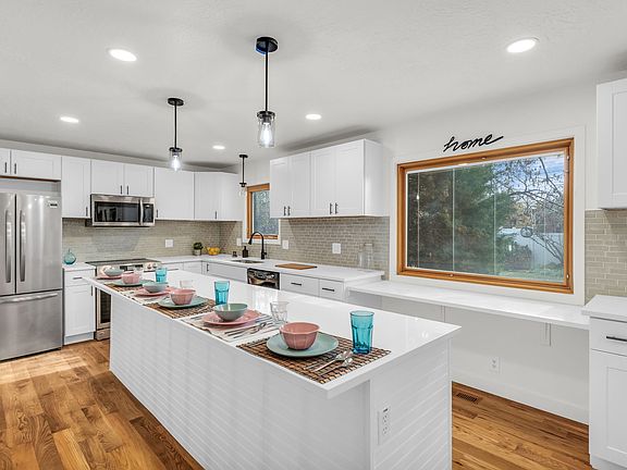 Discover serenity in this remarkable single-family home nestled in a quaint West Valley neighborhood. This residence offers the perfect blend of comfort, style and a hint of the mod look. It has abundant natural lighting and a private backyard-oasis where you'll feel right at home from the moment you step inside. Boasting 5 spacious bedrooms and 3 bathrooms, including a beautiful primary en-suite master bedroom; this home is designed with both functionality and large gatherings in mind. The kitchen is a chef's dream, featuring extended quartz countertops, a charming serving bar, and a double oven for that baker. From here, step out onto a covered patio that extends over the backyard-perfect for morning relaxation and evening gatherings. With remolded kitchen and baths, the home exudes a fresh, welcoming ambiance. The main floor and fully finished basement are enhanced with new excellent, durable and stylish glam rock/mod look and design. Whether you're enjoying the warmth of the living areas or the peaceful retreat of your backyard, every detail of this home has been thoughtfully crafted to elevate your lifestyle.