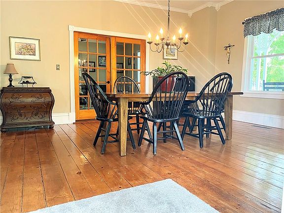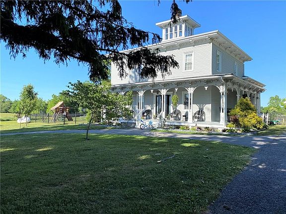 ~ Head Turning Italianate with Wrap Around Front Porch, Blacktop Circular Drive, Gated With Full Wrought Iron Fencing to the 2.5 Car Detached Garage and Back of Home. Over 3000 Sq. Ft, w 3 Plus Bdrms., 2 Full Baths. Formal Dining and Living Rooms w Original Hardwood Flooring And Woodwork as Entering The Front of Home, Updated Eat in Kitchen, Granite Counter, Stainless Appliances, Double Wall Ovens, Gas Cooktop on Center Island, Beverage Area, Pantry w Plenty of Storage, Wood Burning Stove, Bright-Open with Cozy Loft Area Over Top. Family Rm. Plus Den/Sunroom off Kitchen with Double Sliders Overlooking Back Yard, Full Bath and Laundry for Convenience on First Floor, Second Story Hosts 3 Plus Bedrooms and Full Bath. Large Deck , Fully Fenced Yard w Safe Play Areas, Sparkling In Ground Pool with Separate Enclosure, Chicken Coop and Chickens Can Be Included in Sale. CHARACTER THOUGH OUT, NUMEROUS UPDATES - Windows, Roofing, HVAC, Hot Water Tank, Septic, Subpump, Insulation and Air Sealed Whole House, Salt Water Pool System and Liner... Spectrum to Be Added Soon in Area. CALL FOR YOUR PERSONAL TOUR ~