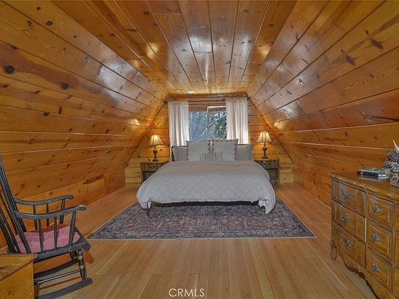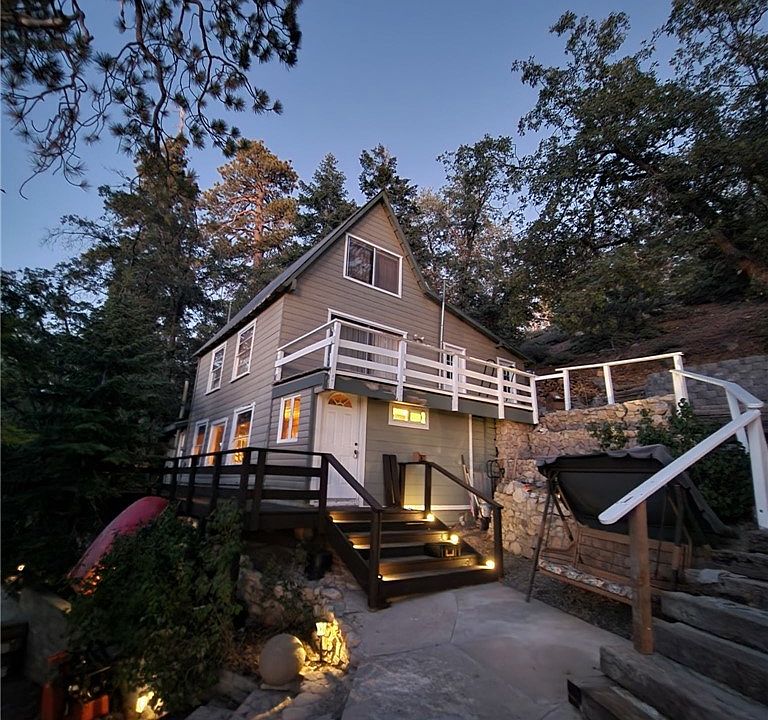 New decking and driveway improvements are a major bonus to this vintage cabin! Tucked away in the breezy hills of Green Valley Lake, this updated beauty blends vintage charm with modern conveniences. Every inch of the interior has been thoughtfully remodeled, refinished, or updated—highlighted by upgraded plumbing and electrical systems, a fully updated bathroom, and heated brick floors in the kitchen. The original wood floors have been lovingly restored, adding timeless character to the upper levels. Enter through the cozy lower level, featuring an open-concept kitchen/dining area, a stylish ¾ bath with a walk-in shower, and a spacious laundry/work/storage room. Newly carpeted stairs lead to a large lodge-style living room with a striking granite fireplace & deck entrance. To the right of the fireplace, is a newly finished bedroom also with deck access. The top level boasts a spacious & secluded primary sleeping area, ideal for restful mountain slumber. While some exterior work remains—and is reflected in the price—the setting is unbeatable. The National Forest is your backyard & offroading access is up the street. Outdoor enthusiasts will love the year-round adventure opportunities. Experience everything this old style beauty & Green Valley Lake have to offer.