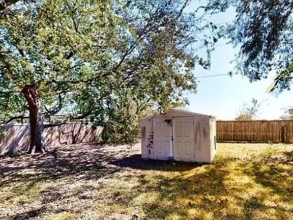 Adorable single-story on large lot with brick elevation and mature trees! Separate guest house on property, 2-car carport, storage shed, larger storage building, and a workshop with 2 roll up doors and electricity! Inside you will find 3 bedrooms with 1 full bath and half bath. Fridge conveys with the home! New metal roof was installed 2016-17. Chain link fence added in 2019. New laminate flooring installed in January 2021 and fresh paint throughout in September, minus master. Both homes are on separate electric meters. Large open kitchen boasts an abundance of cabinetry and counter space, and an electric range!