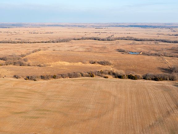Located in the sky-stretching big ranch country of southeastern Cowley County, this 862 acre property is the ultimate combination of scenery, recreation, and ranch. Beautiful Otter Creek runs directly through the heart of the property, creating hardwood timber bottoms and hillsides that jut up into a sea of native grass flats with pronounced elevation changes. To say that this ranch is easy on the eyes is an understatement. With Otter Creek being a year-round clear water source, the immediate area is also known for very high-quality spoils and a productive growing past. With 233.88 FSA acres maintaining a mixture of soybeans, wheat, corn, milo, and possibly alfalfa, the productive income and wildlife support are excellent. Along with the tillable aspects of the property, there is substantial grazing opportunities with quality fencing encompassing lightly grazed pastures supported by 10 total ponds scattered throughout the property. With several of the ponds being sizable, there is a very strong population and opportunity to hunt and harvest waterfowl, and that is certainly reflected in our photo tour of the ranch. Several of the ponds also have good populations of fish for additional entertainment, including bass, crappie, and catfish. This property also maintains a very clean and efficient ranch headquarters that includes a 2,724 sq ft main ranch house, a 1,700 sq ft hunters bunk house, 2,460 sq ft shop/barn, a 2,400 sq ft shed, and a livestock shed along with several other smaller outbuildings. The hunter's bunkhouse is recently renovated and updated to be stylish and very comfortable and will fully accommodate a small group of hunters. With 2 bedrooms, 2 bathrooms, a full kitchen, Wifi, a cell phone booster, and ample living space to enjoy your time while on the hunt. This ranch is surrounded by sizable properties that do maintain a management program, including protein feeding and consideration of overall herd age structure and harvest. This ranch, in particular, has produced numerous high-scoring top-end bucks, including very high-ranking bucks that scored well over 200+ inches. Although the turkey populations in Kansas have been slightly down in recent years, this has historically been an outstanding turkey hunting property, and there is always a handful of quail coveys that call this great ranch property home. Please note, for the purposeful buyer, this ranch meets the definition of what an all-encompassing ranch is. Beauty, location, improvements, deer, turkey, fishing, waterfowl, tillable, income, grazing, water, views, and the list can go on and on. Please let us know if we can help show you this property in person; it will make an impression.