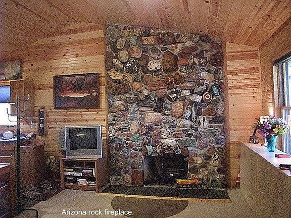 Great location, just minutes from Fish Creek and Ephraim! Charming log home with covered front porch, Canadian red pine interoior walls and ceilings, all Kohler fixtures. Hickory kitchen cabinets, and fireplace made of stone from Arizona. Furnishings included are a leather sofa, 3 T.V.s beds, and misc. other items. Unique rock gardens and 10'x12' storage shed.