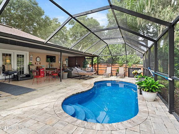 Welcome to this charming 4-bedroom, 2-bathroom home, featuring a beautiful screened-in pool and a spacious patio area, perfect for outdoor relaxation or entertaining. Situated on a generous half-acre lot, this property offers plenty of space and privacy for your family. The oversized garage provides ample storage, ensuring convenience and functionality in a peaceful and welcoming neighborhood. Ideal for both comfortable living and enjoying Florida's sunny lifestyle! Step inside to find a welcoming, open-concept layout with plenty of natural light. The spacious living room flows into the kitchen, making it perfect for family gatherings and entertaining guests. The kitchen is equipped with ample counter space, and a convenient breakfast bar. The primary bedroom offers an en-suite bathroom with a large jetted tub and separate shower. While the additional bedrooms are generously sized, providing comfort for family members or guests. With a separate laundry area, making household chores more manageable. New roof in 2020. AC 2014.