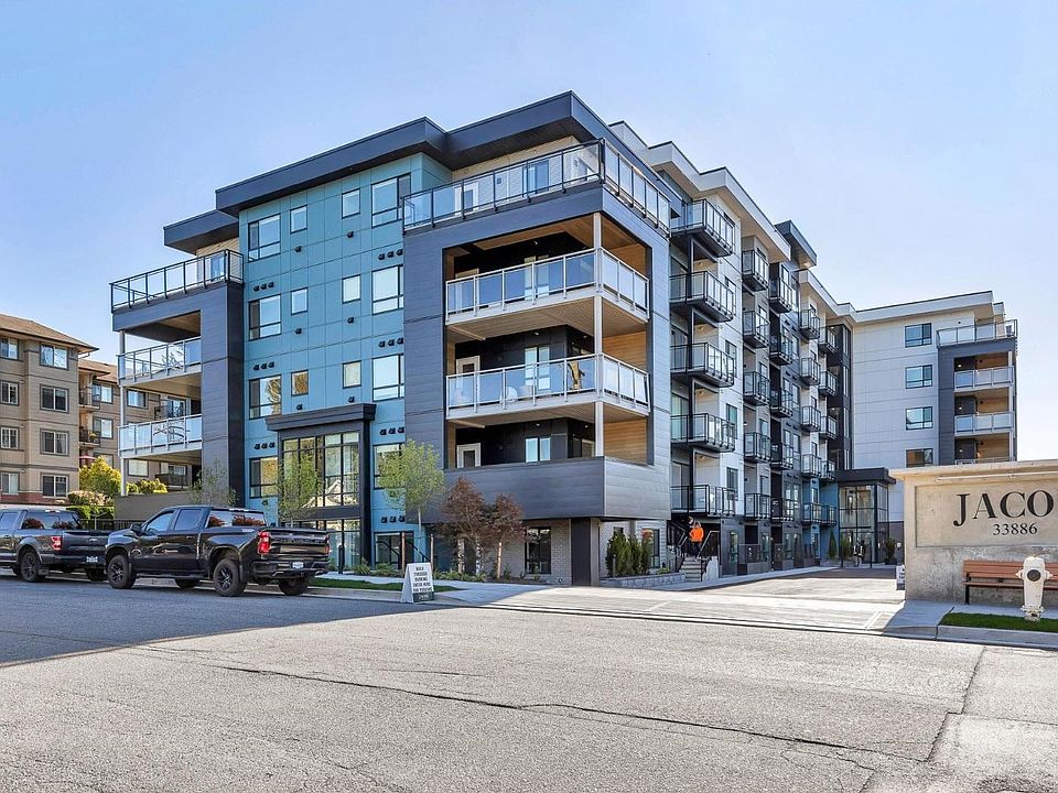 Welcome to this bright and modern 1 bedroom plus den home located in the heart of Abbotsford's Historic Downtown District. This brand new condo offers an open-concept layout with large windows bringing in plenty of natural light. The kitchen features sleek quartz countertops, soft-close cabinetry, and full-size stainless steel appliances. The spacious bedroom includes a large closet and the den provides an ideal space for a home office or guest area.