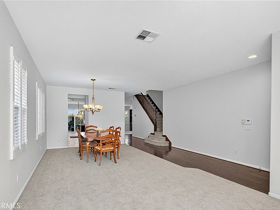 Freshly painted white throughout the whole home. This home is located in the Morgan Hill Community with an incredible Resort Style Clubhouse and HOA Amenities. This 5 bedrooms, 3 bathrooms, 2726 Sq. Ft. home has 2 Downstairs bedrooms and a Bathroom with a walk in shower. Perfect if you need an area for an in-law suite or guest room and an office. This home has a Formal Living room/Dining room as you enter, followed by an open concept Kitchen/Nook/Family room area. The Gourmet Kitchen has a center Island with a convenient sink and bar area for eating, walk in pantry for additional storage, Stainless Steel appliances including a Double Oven, and ample kitchen cabinets, including a Butler's panty. This beautiful home includes Plantation Shutters throughout and new neutral colored carpet. Upstairs has a spacious Primary Suite with a soaking Tub and separate walk in shower, and Dual sinks. All upstairs bedrooms have walk-in closets. The Water Heater was installed in 2023. Conveniently located near shopping, Restaurants, and the infamous Temecula Valley Wineries, and is freeway convenient. The Morgan Hill Community HOA includes an incredible Clubhouse, Pools, Spa, Pickle Ball and Tennis Courts, Weight and Exercise Room, Several Meeting Rooms, and an area to Entertain with a kitchen, Pool Table, Poker Table Game Room, Indoor Play area for children as well as a shaded Tot Lot. Also, conveniently located Galleron Park is nearby that not only has a large sports area but also a dog park area. It is located in the Temecula Unified School District, including the most sought after Great Oaks High School, Tony Tobin Elementary and Vail Ranch Middle School. Additional, it is also near both the St. Jean's Catholic School and Linfield Christian private schools.