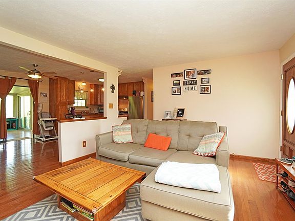 Definitely not a drive-by--much larger than it looks! Kitchen features wood cabinets, quartz counters, stainless appliances, and tile floor. Relax by the fire in the living room, or entertain in the huge finished lower level complete with bar and walkout to the patio overlooking a large back yard and woods. Lower level also has tons of storage. The all season room provides versatile living space. Quiet neighborhood close to the interstate, dining and shopping.