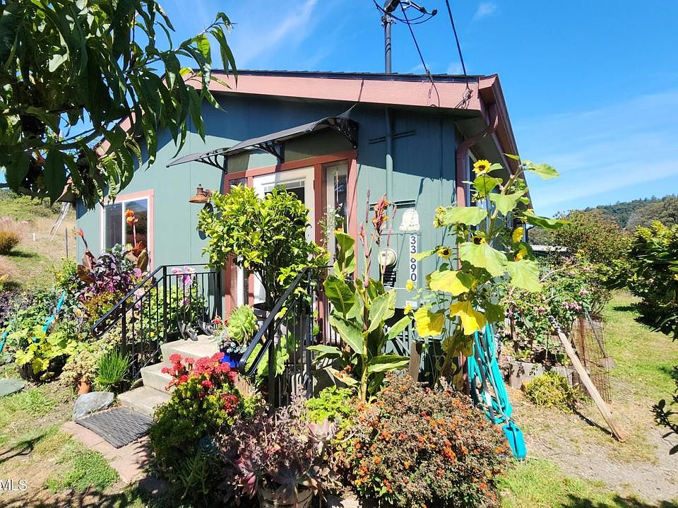 Perched above the Albion River in the quaint Albion Village, this 2009 manufactured home is immaculate. 2 Bedrooms, 2 Bathrooms and a third room for office or sleeping. Amazing and established gardens. 2018, installed 50 year roof, NEM 1 credited solar system with a 'Sunny Boy' inverter that gives you direct solar energy when the power goes out. Doubled pane windows, Hardie board siding, engineered septic system, mutual water and a poured concrete foundation, this home is ready for primary, secondary or investment. Two car garage, with space for workshop and extra parking in the Village is rare. Quick walk to Albion Grocery and quick drive to all the amenities of Mendocino, this is a great location and opportunity.