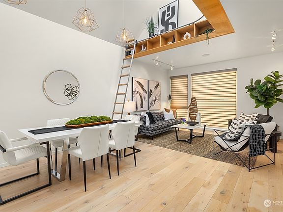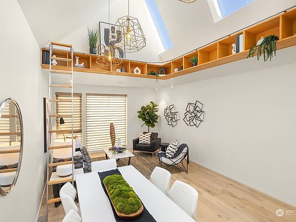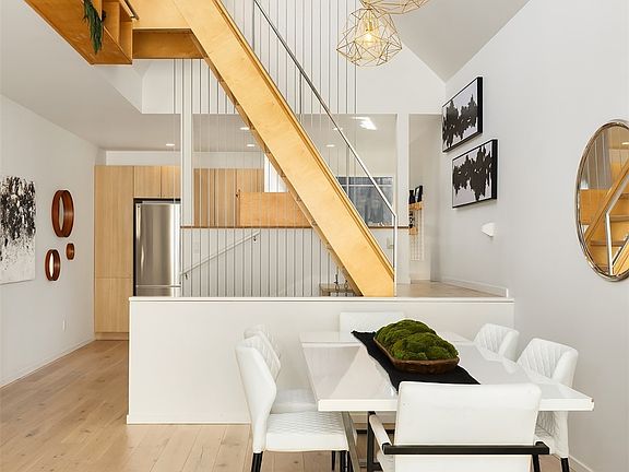 Blocks to all the best restaurants, bars, coffee shops, parks & transit the city has to offer! This show stopper townhouse is flooded w/ light, is ultra liveable & has awesome upgrades (solar, EV charger, built in murphy-bed/office, roof-deck, remote blinds, shoji screens, tankless hotwater & huge windows). The solarium style living space has custom bookshelving & ladder system, a modern kitchen w gas stove, open layout and access to the gorgeous roof deck. Enter to lower level bedroom/office & coat closet, second floor has two beds, two baths and top floor living space. No carpet anywhere. Carport w EV Charging. Community has courtyard & great neighbors. Situated between the heart of Capitol Hill & the quiet Volunteer Park neighborhood.