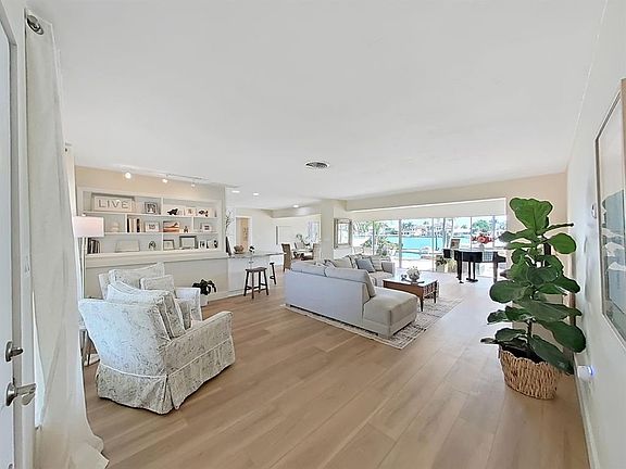 Move right in to this beautifully renovated coastal contemporary home on an extraordinary oversized waterfront lot in the prestigious Bath Club Estates of North Redington Beach. This rare nearly half-acre (.46-acre) property sits on a quiet cul-de-sac surrounded by fine waterfront homes, offering the perfect blend of privacy, space, and resort-style living. Step inside to an open, sun-filled floor plan that flows seamlessly toward panoramic water views. The home has been fully renovated with new luxury vinyl plank flooring, a top tier kitchen with stunning stone countertops, all new LG stainless-steel appliances, and updated baths featuring elegant coastal finishes. Enjoy the serenity of protected waterfront on a wide basin with sunny southern exposure, ideal for boating, paddleboarding, or simply relaxing by the lagoon style pool and spa. Outdoors, tropical landscaping frames a spacious paver patio and pool deck, perfect for entertaining. The property includes a two-car garage and split-bedroom layout for added privacy. Located just steps from a neighborhood park with a walking path, gazebo, playground, and pickleball and tennis courts, this home is part of a community with underground utilities, lantern-style streetlights, and natural gas access. You’re also an easy stroll to the white sands of North Redington Beach, with resident-only parking and beach access. With low town taxes and a central location near shopping and dining, this property combines the best of coastal tranquility and everyday convenience. Note: The home experienced flooding for the first time during Hurricane Helene and has undergone fully permitted professional remediation and renovation — all work completed to modern standards for peace of mind.