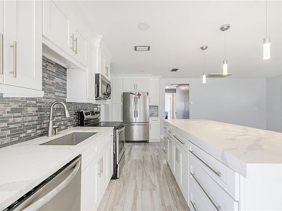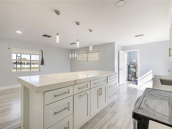 NO FLOOD ZONE! NO HOA! NO WATER BILL! Enjoy the freedom and savings that come with this charming Lehigh Acres home located on a quiet street with endless potential. Featuring 2 bedrooms, 2 bathrooms, and a flex room perfect for a home office, den, or guest space(can be converted to a third bedroom) this property offers both comfort and versatility. Step inside to an open-concept living area filled with natural light, vinyl plank flooring, and a modern kitchen complete with granite countertops, stainless steel appliances, and a large island ideal for entertaining or everyday dining. Outside, the spacious backyard is surrounded by a 6-foot privacy fence, offering the perfect setting for outdoor gatherings, pets, or even a future pool. There’s also a storage shed, screened-in patio, and plenty of room for boats, trucks, or trailers with easy side access. This property presents a fantastic opportunity for first-time homebuyers looking for a move-in ready home with room to grow, or for investors seeking a rental-ready property with strong income potential. With just a few finishing touches, you can add instant equity and make this well-maintained home your ideal primary residence or investment opportunity.