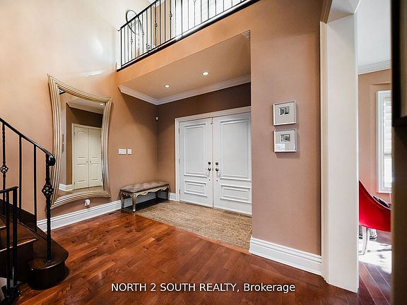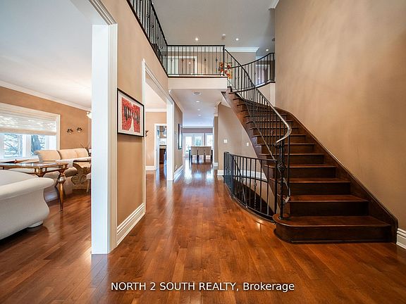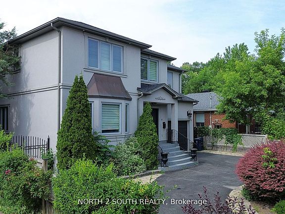 This stunning executive home offers over 5,000 sq. ft. (basement included) of living space on a circular driveway in one of Etobicoke's prime neighborhoods. The grand entrance leads to a massive foyer with soaring ceilings and a beautiful circular staircase. The main floor features a sun-filled formal living and dining area, a gourmet kitchen with antique white shaker cabinetry, a center island with a built-in cooktop, and a breakfast nook overlooking the backyard oasis with a 16 x 32 saltwater pool and expansive deck. The cozy family room, highlighted by a custom limestone gas fireplace, is perfect for gatherings, while a main floor office accommodates work-from-home needs. Upstairs you will find four oversized bedrooms, each with a full ensuite bathroom and custom walk-in closet. The primary retreat has a walk-out veranda and a spa-like six-piece bathroom with an air jet jacuzzi tub, a large shower, and graffito-featured walls. The second-floor laundry area adds convenience. The professionally finished basement includes an additional bedroom and a four-piece bathroom, ideal for guests or a nanny suite. 5-year new roof, and 3-year-new pool liner. This move-in-ready home is designed for comfort and style-an opportunity not to be missed!