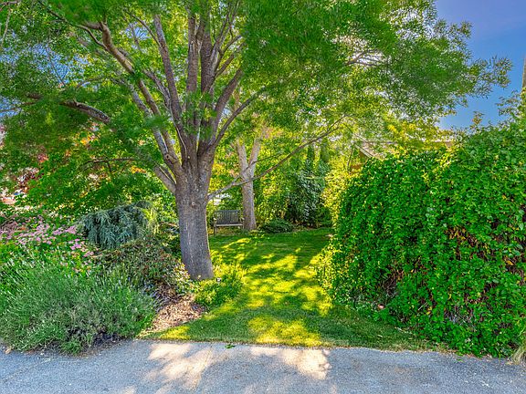 Gated courtyard welcomes you to this single level home with a great floor plan. Top features are 4 bedrooms, 3 baths & a wonderful, 24 x 28 family room. Separate living room with brick fireplace, formal dining room & kitchen with Corian counters, 5-burner convection gas range & stainless appliances. Beautiful outdoor areas with mature trees, lush plantings, & abundance of floral delights. This home has 2 suites. The primary suite is well separated & creates nice extra living & a quiet retreat space for adults or extended family member. You will love the extra-large family room with red oak flooring, gas stove & expanse for all your activities. The front yard is secluded from the street & has private sitting areas surrounded by mature landscaping. The fully fenced rear yard offers a lovely, covered patio, mature maples & firs, large lawn area, mountain views & garden beds featuring a rich bounty. New Milgard windows in 2022, R48 energy efficient. 2 car garage.