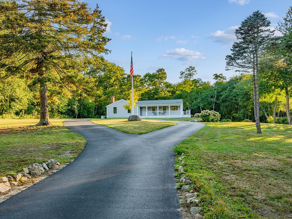 Discover a remarkable property in the heart of West Barnstable nestled on an expansive 2.15 ac lot. Meticulously renovated 2 bd 1 ba ranch with welcoming front porch exudes a perfect blend of modern elegance and classic charm. 1096 sgft of one floor living. The home is designed with careful attention to every detail, ensuring a sophisticated living experience, a marvelous example of craftsmanship. Natural light floods the interior, highlighting stunning oak flooring and offering picturesque views from every room. The residence boasts three cozy fireplaces, adding warmth and character, newly designed eat-in kitchen, equipped with state-of-the-art appliances laundry area and walk-in pantry. The spacious bathroom includes a walk-in shower and is handi-cap accessible. Central A/C ensures comfort throughout the seasons, while a reliable generator provides peace of mind. The walkout lower level represents an additional 400 sqft of versatile family room or office space w/fp, plus garage access. Embrace serene privacy with pastoral views and charming stonewalls, all while being conveniently close to beautiful beaches, shopping and major highways. This home is a true West Batrnstable gem.