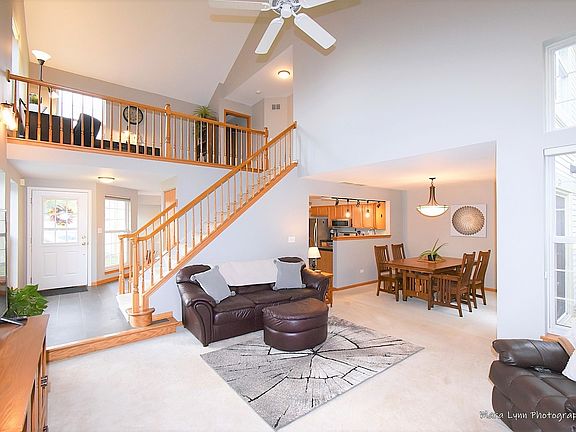 Don't miss out on this ideal end-unit townhome located in Columbine Glen subdivision within highly desirable Glen Ellyn school district! Inviting ceramic tile entry leads to open living room with cozy gas fireplace, soaring ceilings and plenty of natural light. Spacious kitchen with oak cabinets, newer stainless-steel appliances, new light fixture, large walk-in pantry plus second storage closet, and plenty of room for an island! Separate eat-in area plus additional dining room space that leads to patio. 2nd floor includes large vaulted master suite with walk-in closet plus 2nd closet. Private master bath with dual sink, soaker tub and separate shower! Decently sized 2nd bedroom with 2nd full bath and loft area, perfect for at-home office or close off for 3rd bedroom. 1st floor laundry, 1/2 bath off entry and 2-car attached garage, plus decently sized lot included in sale provides privacy and wooded space! Several new windows throughout. Easy access to 355 and within close proximity to Lombard and Glen Ellyn downtowns with plenty of terrific restaurants, shops plus Metra train stations. So much to love about this one, make it your home today!