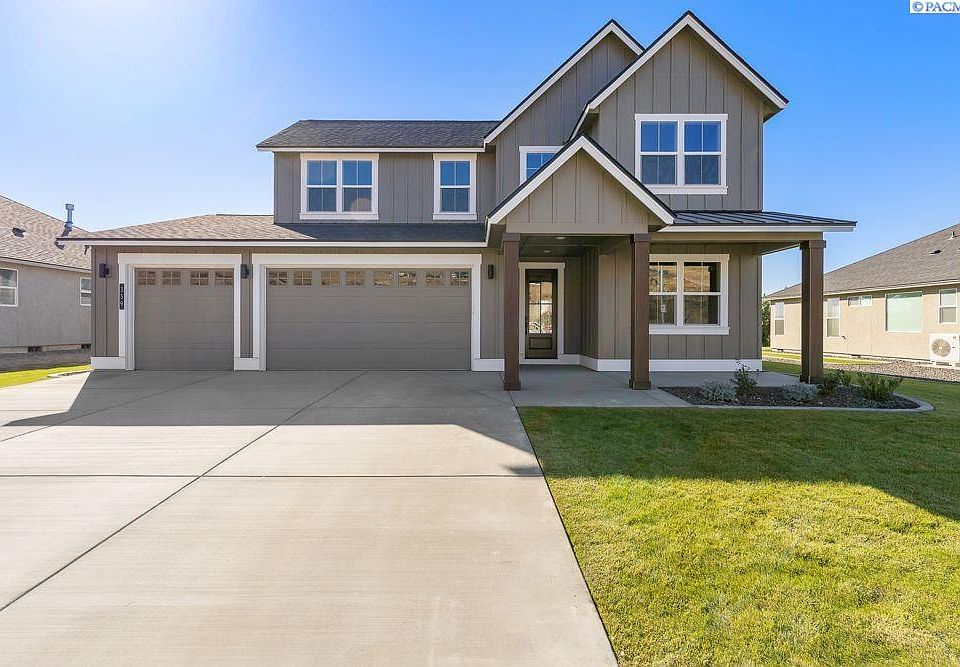 MLS# 284129 Welcome to Lot 2, Phase 5 of the premier Westcliffe Heights community by Pahlisch Homes, where resort-style amenities, including a sparkling pool and a clubhouse are designed to enhance your lifestyle. The brand-new Siskiyou floor plan is an exciting addition to our offerings, featuring a thoughtfully designed 2-story layout with the primary suite on the main level—something our buyers have been asking for! Designed with custom features and trending finishes, this home is both stylish and functional. Upon entering, you'll be greeted by an elegant entry with meticulously crafted millwork and trim, leading to the expansive great room with soaring 10-foot ceilings and an abundance of windows that fill the space with natural light. The gas fireplace with tile surround creates the perfect ambiance for both family gatherings and entertaining. The chef-inspired kitchen is a true highlight, complete with stainless steel appliances, quartz countertops throughout the home, a full tile backsplash, and a sprawling island with an under-mount sink. Soft-close cabinetry with hardware and a spacious dining area ensures a seamless flow for both everyday meals and special gatherings. Upstairs, enjoy a loft area perfect for a playroom, media room, or a separate space for the kids to unwind. Additional features include a 3-car garage with an additional expansive 9x17 tandem bay, providing plenty of space for storage, hobbies, or additional vehicles. This home also includes front and backyard landscaping. Make this stunning home yours today! Open for tours Friday–Sunday, 11–4 and Monday-Tuesday 12-4. * Buyer Bonus available when using Preferred Lender—see site agent for details* Photos are virtually staged. Stop by and tour our new model home at 359 Ascend Avenue in Richland: Friday-Sunday 11-4, Monday-Tuesday 12-4