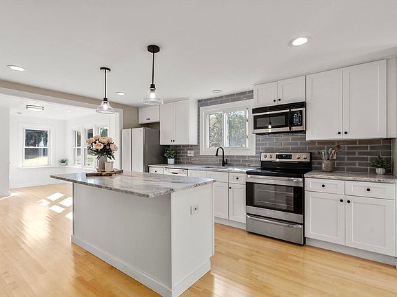 - Features: Flooring - Hardwood, Countertops - Stone/Granite/Solid, Kitchen Island, Cabinets - Upgraded, Open Floorplan, Recessed Lighting, Remodeled, Stainless Steel Appliances, Lighting - Pendant