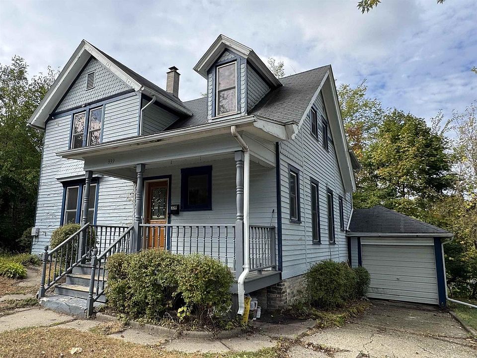 Super location, quiet street-much of the interior has been updated. Hardwood floors refinished, new windows throughout, updated electric with 200 amp service. Newer kitchen with kitchen appliances included. Main floor bedroom with walk through 1/2 bath (tub in photo has not been used in 20 years). Upstairs has an office or family room with built-ins, 3 bedrooms, updated bath with walk-in shower. 2nd floor deck and stairs to ground. Basement is clean and has exterior entrance for work or appliances. Attached 1 car garage. Exterior needs to be painted. Will not qualify for FHA/VA loans. Easy to show!
