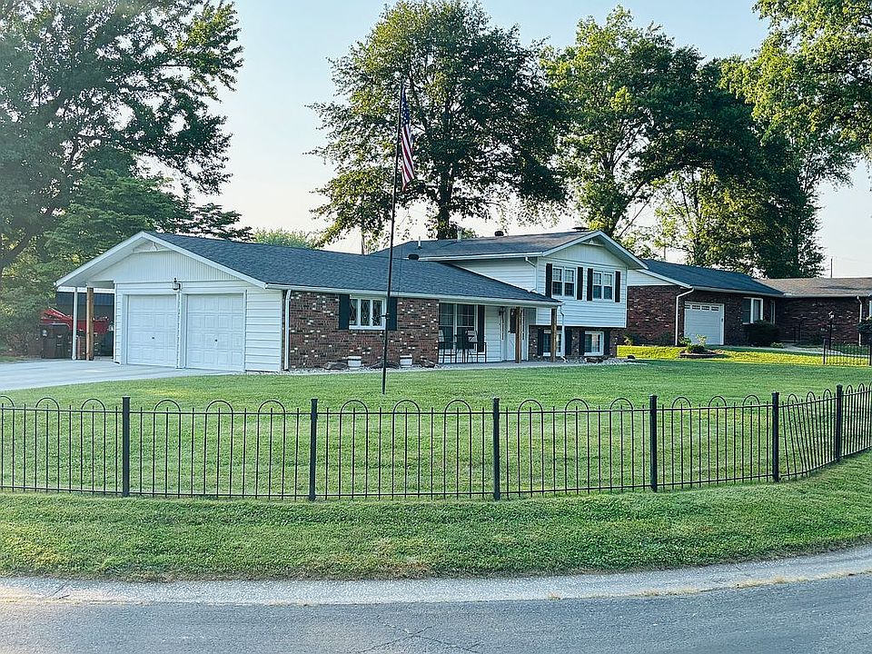 Come make life lasting memories in this Beautifully updated tri level home on a large corner lot perfectly located only a block from the school. New concrete driveway and garage floor within the last two years. Stamped concrete front and back porch as well as a stamped boarder on the driveway adding great curb appeal. The roof is 7 years old. All water proof vinyl flooring throughout the house. New interior doors and trim five years ago. New water heater last year. 3 bedrooms and two bathrooms upstairs. Living room,kitchen and dining room on main level. Second living room one bedroom , laundry room and half bath in the basement. All new sewer plumbing inside and out within the last three years. 16x10 storage shed included. Great neighborhood with plenty of kids of all ages.