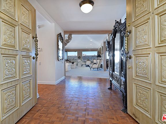 BEVERLY HILLS LIVING WITH WILSHIRE CORRIDOR VIEWS! FROM THE MOMENT YOU WALK THRU THE PENTHOUSE DOUBLE DOORS THIS UNIT EXUDES GRACE AND CHARM AND A WOW VIEW !!!! FLOOR TO CEILING WINDOWS, WOOD FLOORING, LUSH CARPET & GRACIOUS & BRIGHT LIVING ROOM AND DINING ROOM. LOVELY OPEN FAMILY ROOM WITH WET BAR IT HAS A DELFT BLU TILE EAT-IN KITCHEN WITH YET MORE VIEWS. MASTER SUITE IS SPACIOUS AND GORGEOUS...MORE CLOSETS THAN YOU CAN IMAGINE OR FILL. MARBLE BATH HAS SPA TUB , STEAM SHOWER AND TONS OF BUILT INS. SECOND BEDROOM AND BATH ARE GENEROUS. THIS UNIT WILL MAKE YOU SMILE! SEE FROM DOWNTOWN TO OBSERVATORY TO HOLLYWOOD HILLS EVEN SNOW ON THE MOUNTAINS