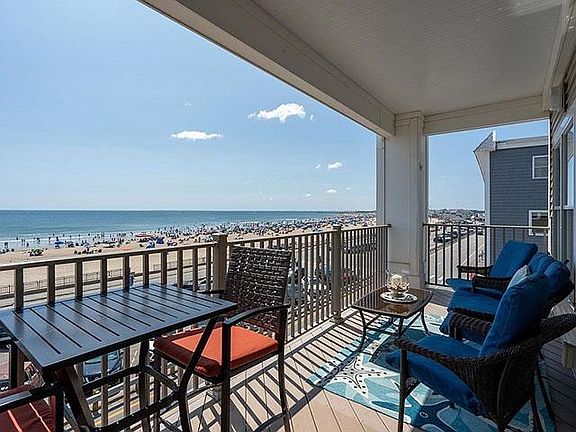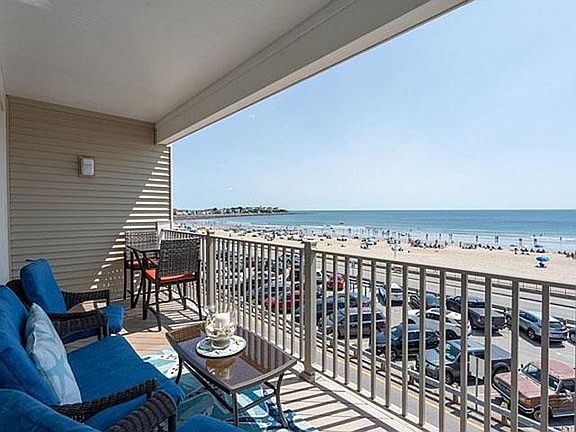 WATERFRONT WATERVIEWS! Panoramic water views of the Atlantic Ocean from Great Boar's Head to Cape Ann. Water views from the large open concept kitchen dining living & deck area are a sight to see. Enjoy the sunrise changing colors w/ the seasons. Imagine a sea of umbrellas on the sand on a hot July day or the deserted beach on a cold winter day. End unit w/ lots of natural sunlight w/ Southern exposure. Great location–walking distance to all the activities on the Blvd. The unit has 2 bedrooms & 1 full bathroom w/a large step in shower, double sinks & full size stackable washer/dryer. The unit has great storage.The stainless steel kitchen has a large granite eat in counter & lots of cabinet space. The waterfront deck area is 19'6" X 7 so fun! The unit has crown molding, sprinkler system, intercom system, wood laminate flooring, glass top stove, stainless steel refrigerator w/ice/water on the door, dishwasher, built in microwave, garbage disposal, recess lighting, paddle fans, Mitsubishi electric air conditioning & heat combination units, electric heating unit in entry. Sorry no cats but 30lb dog allowed w/ association approval. Condo fees $350 a month. 339 Ocean Boulevard is a 30 unit complex w/ 24 living condominiums on the upper levels 6 commercial units on the ground floor. Assigned parking for 2 cars & an elevator. Weekly rentals allowed in the summer season May – September. Monthly rentals allowed October - April! Furnishings negotiable. Not in a flood zone. A must SEA!