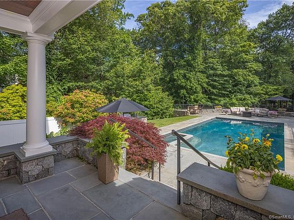 Welcome home! This beautifully renovated New Canaan estate blends today's modern luxuries with the timeless charm and architecture of its era. From the moment you arrive, the grounds make a lasting impression-professionally landscaped with stonework, graceful iron fencing, and lush greenery that feels like your own private retreat. Designed for both relaxation and entertaining, the outdoor spaces shine with a custom heated pool, built-in kitchen, bluestone terrace, and two inviting porches-one covered and one screened-perfect for summer dinners, morning coffee, or cozy evenings with friends. Inside, the warm and welcoming foyer sets the tone. Elegant details and thoughtful design flow throughout, with over 4,100 square feet of living space. The primary suite is a true sanctuary with vaulted ceilings, sun-filled windows, floor-to-ceiling paneling, a large sitting room, and a marble spa bath. Upstairs, four additional bedrooms and a charming reading nook make space for everyone. The finished lower level adds even more room for entertaining, play, or a home gym. Every inch of this home has been carefully curated so you can move right in and start enjoying the lifestyle New Canaan is known for. A rare opportunity to own a one-of-a-kind estate where every day feels special. Homes like this don't come along often-schedule your private showing