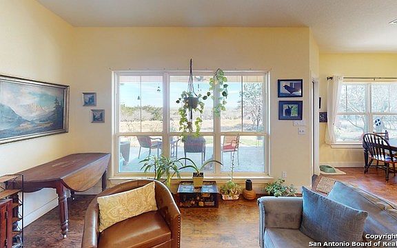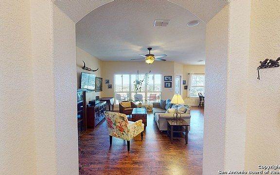 One owner, five star energy home built in 2014 on 3.7+/- acres in Canyon Springs Ranch. Three bedrooms, two baths with open living, dining and kitchen. Windows across the back of the home give you lots of light and the view. Alder cabinets, all granite counters, propane cooktop, on-demand water heater, and dryer. Surround sound speakers inside and out. Flooring of luxury vinyl planks throughout. Partially fenced yard and fenced garden area. Two 2,500 gallon water catchment storage tanks. Enjoy the sunrise from the back patio. Canyon Springs Ranch has a 90+ acre wilderness area with trails plus a homeowner's river park on the Guadalupe River.