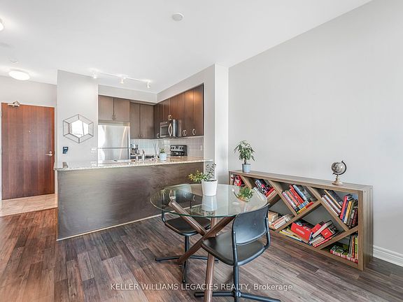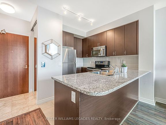 Penthouse views with this modern 1 bedroom, 1 bathroom condo offering approximately 585 Sq ft (+ Balcony) of stylish, open-concept living space. Built in 2017, this well maintained unit features a functional layout with no carpet throughout and a private balcony with unobstructed views perfect for relaxing. It also offers the convenience of in-suite laundry, a reserved parking spot, and a locker for extra storage, all with an affordable maintenance fee. Residents enjoy a full range of resort style amenities including an indoor pool with sauna, Tennis courts, a fitness and aerobics center, an indoor party room, and an outdoor terrace for entertaining and socializing. This home is located just steps from Square One, Sheridan College beautiful parks and top-rated schools, with easy access to Highways 401, 403 and 407 for seamless commuting. Downtown Toronto is just 30 minutes away. Welcome home!