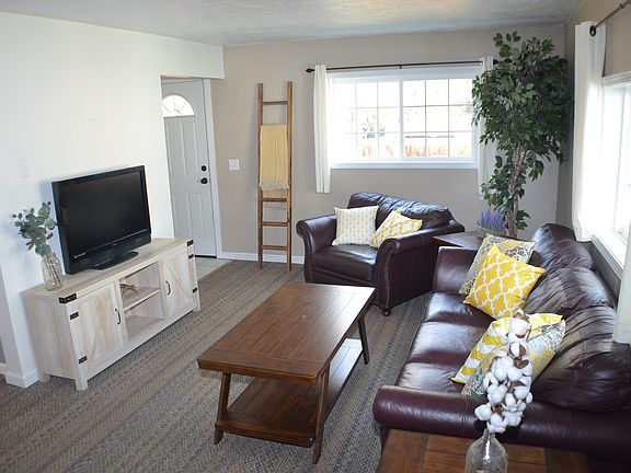 Charming 3 bedroom/1 bathroom on a dead end street. Newer vinyl windows keep this home toasty with its oil monitor stove. There is a cut out to the kitchen for the open concept feel. Laundry room with space for storage. Property is fenced, has access to Canyon Creek, lilac bushes, water feature and back patio. Metal roof and a 12x12 shed for storage with power.