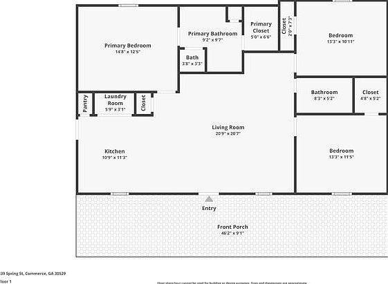 Charming One-Level Home in Commerce, GA MOVE-IN READY This home is move-in ready. Schedule your tour now or start your application today. Monthly Recurring Fees: $25.00 - Smart Home Maymont Homes is committed to clear and upfront pricing. In addition to the advertised rent, residents may have monthly fees, including a $10.95 utility management fee, a $25.00 wastewater fee for homes on septic systems, and an amenity fee for homes with smart home technology, valet trash, or other community amenities. This does not include utilities or optional fees, including but not limited to pet fees and renter's insurance. Welcome to this inviting 3-bedroom, 2-bathroom single-story home in Commerce, GA, offering a functional layout and comfortable living spaces throughout. A covered front patio and large front yard create a welcoming first impression and provide outdoor space to enjoy. Inside, the home features an open-concept living and kitchen area finished with tile flooring, creating a clean and easy-to-maintain central space. The kitchen offers ample upper and lower cabinet storage along with matching appliances, making everyday meal preparation simple and convenient. All three bedrooms feature LVP flooring, and closet space runs throughout the home, supporting practical storage and organization. The primary bedroom includes a private en suite bathroom, while the second full bathroom is conveniently located to serve the remaining bedrooms. Out back, a large tree-lined backyard provides a pleasant outdoor setting with room to relax, enjoy fresh air, or set up outdoor seating. With its comfortable layout, useful features, and Commerce location, this home offers an easy and welcoming living experience. Apply now to make this home yours! *Maymont Homes provides residents with convenient solutions, including simplified utility billing and flexible rent payment options. Contact us for more details. This information is deemed reliable, but not guaranteed. All measurements are approximate. Actual product and home specifications may vary in dimension or detail. Images are for representational purposes only. Some programs and services may not be available in all market areas. Prices and availability are subject to change without notice. Advertised rent prices do not include the required application fee, the partially refundable reservation fee (due upon application approval), or the mandatory monthly utility management fee (in select market areas.) Residents must maintain renters insurance as specified in their lease. If third-party renters insurance is not provided, residents will be automatically enrolled in our Master Insurance Policy for a fee. Select homes may be located in communities that require a monthly fee for community-specific amenities or services. For complete details, please contact a company leasing representative. Equal Housing Opportunity. Estimated availability date is subject to change based on construction timelines and move-out confirmation. This property allows self guided viewing without an appointment. Contact for details.