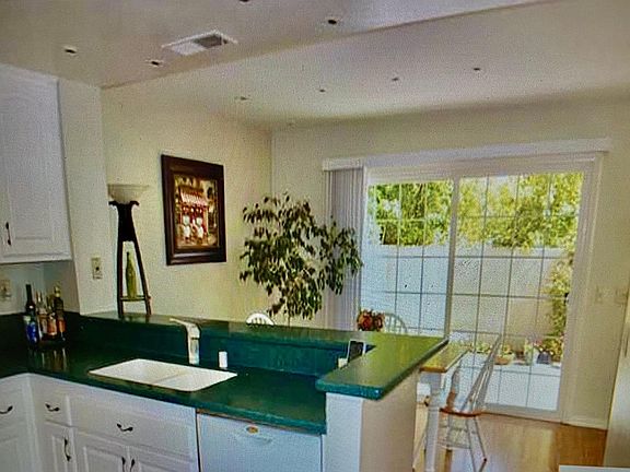 Directly ACROSS FROM UCI, award-winning Turtle Rock Elem, University High School &, spacious dining rm, bright living rm w/ HIGH vaulted ceiling & surround speaker wiring ready, maple laminate flooring & berber carpeting, ceiling fans, 3 bedrooms, 3 baths, with a main floor bedroom/den and shower down; two master suites each with own full bath up, inside laundry rm with dryer and washer provided, wrap-around yard w/ views of Newport coast, green & city lights & walking distance to entertainments, restaurants, shopping, nature reserve & only short drive to Newport Beach, Fashion Island and Costa Mesa.