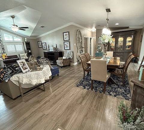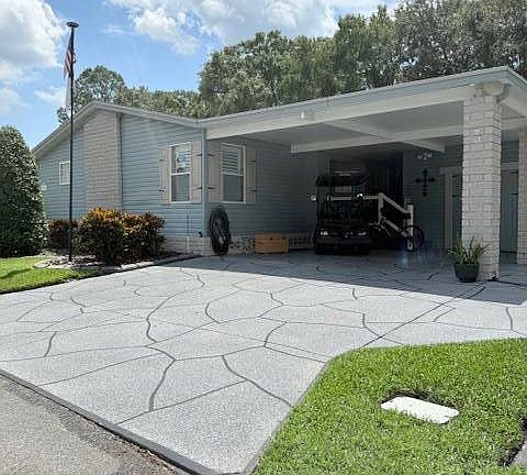 One of a kind! This triple-wide, three-bedroom retreat has been completely transformed into a "new" home from top to bottom. New tape and texture walls and ceilings framed by custom crown and wide base moldings help to complete the elegant look of this home. The beautiful LVP flooring is found throughout the home, as well as fresh paint in every room! The 3 bedrooms are spacious, including a master en-suite with a massive walk-in closet and updated vanity, double sinks, a tiled step-in shower, and a beautiful soaking tub!! The kitchen was totally gutted and redone with gorgeous custom wood cabinets, unique granite countertops, and high-end dark stainless steel appliances! Off the kitchen, there's a wonderful utility room as well as a laundry room with lots of useful storage! An outstanding finished lanai surrounded by windows overlooks the stately landscaping, which faces the woods. An adorable bridge extends to meet the beautiful pond, which completes the view of the inviting backyard! There is an additional patio for enjoying grilling, sunning, and outside activities!! There are so many extras with this showplace, including two 12x12 sheds, gorgeous front steps, a painted double driveway, and a carport!! THIS TRULY IS A MUST-SEE! While all information is considered reliable, we encourage prospective buyers to conduct their own personal inspections for a comprehensive understanding of the property's condition and measurements. Please note that American Mobile Home Sales of Tampa Bay Inc. cannot guarantee the accuracy of this information. As a buyer, you will be responsible for all closing costs, sales tax, and title transfer fees associated with the purchase. The buyer assumes full responsibility for obtaining all current rates for lot rent, fees, and any pass-on costs, as well as to familiarize yourself with the lease agreement and community regulations. For these details, please reach out to the community or park manager directly. American Mobile Home Sales of Tampa Bay Inc. is not responsible for quoting said fees or policies.