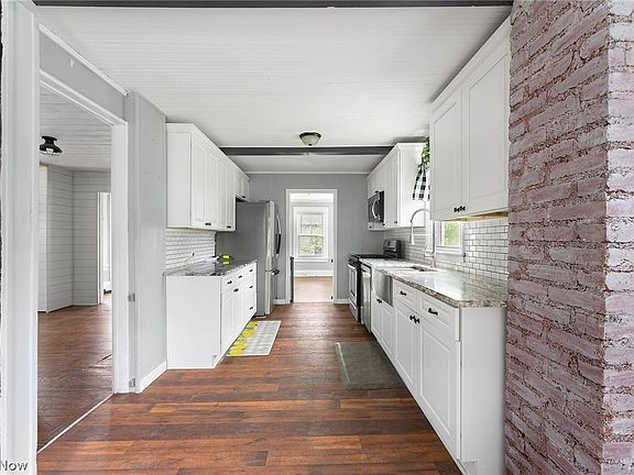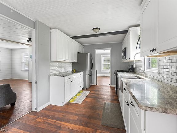 Step into this charming farmhouse-style abode nestled in a serene neighborhood, offering a blend of rustic charm and modern convenience. Boasting 4 bedrooms and 1 full bathroom, this home exudes a cozy ambiance perfect for families or those seeking a tranquil retreat. As you enter, you're greeted by an updated kitchen adorned with soft-close white cabinets, sleek subway tile backsplash, granite countertops, and stainless-steel appliances, complemented by a quaint coffee bar area for your morning brew. The living room features inviting ship lap walls, while the dining room showcases rustic barn doors, adding character to the space. Additionally, there's a convenient office area ideal for remote work or study sessions. The full bathroom is a sanctuary of relaxation, complete with a claw foot tub, evoking a sense of vintage charm. Upstairs, three bedrooms await, each adorned with charming bead board walls and ceilings, creating a cozy atmosphere reminiscent of a countryside retreat. Downstairs, the finished basement offers additional living space, including a bedroom with laminate flooring, providing versatility for guests or a growing family. Outside, the fenced-in backyard offers privacy and security, perfect for outdoor gatherings or pets to roam freely. A one-car garage provides ample storage space for vehicles or outdoor gear. Conveniently located near shopping amenities and within walking distance to the town center, this home offers the perfect balance of rural tranquility and urban convenience. Don't miss your chance to experience the allure of country living in this delightful farmhouse-inspired residence.