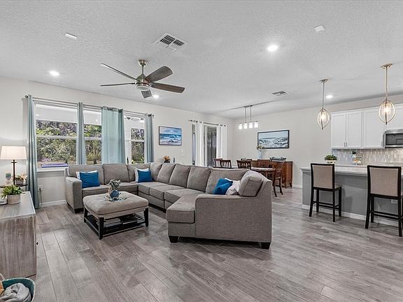 Picture weekend mornings in this stunning Pulte home where your coffee ritual begins in a gorgeous upgraded kitchen with soaring ceilings and 9-foot doors that make every space feel grand. The wired speakers softly play your favorite playlist as you prepare breakfast for guests or parents visiting in the first-floor guest suite, while you retreat each evening to your own first-floor primary bedroom sanctuary. This thoughtfully designed home in a secure gated community flows seamlessly from intimate family dinners to backyard celebrations, where your extended garage (5 feet longer than standard) stores everything from holiday decorations to bicycles for weekend adventures. When the sun sets, step onto your patio where built-in speakers create the perfect ambiance for stargazing or quiet conversations. But it's the lifestyle beyond your front door that truly captivates. Saturday farmers markets become family traditions, bike trails turn into afternoon escapes, and Downtown Winter Garden's and Clermont's charming streets offer endless discoveries just minutes from your private retreat. Enjoy sunset strolls in the neighborhood dock. Top-rated schools and family-friendly parks complete the picture of a community where memories are made and roots run deep. This isn't just luxury living — it's coming home to everything you've dreamed of in Winter Garden's most desirable gated community. Preferred lender is offering a credit with purchase.