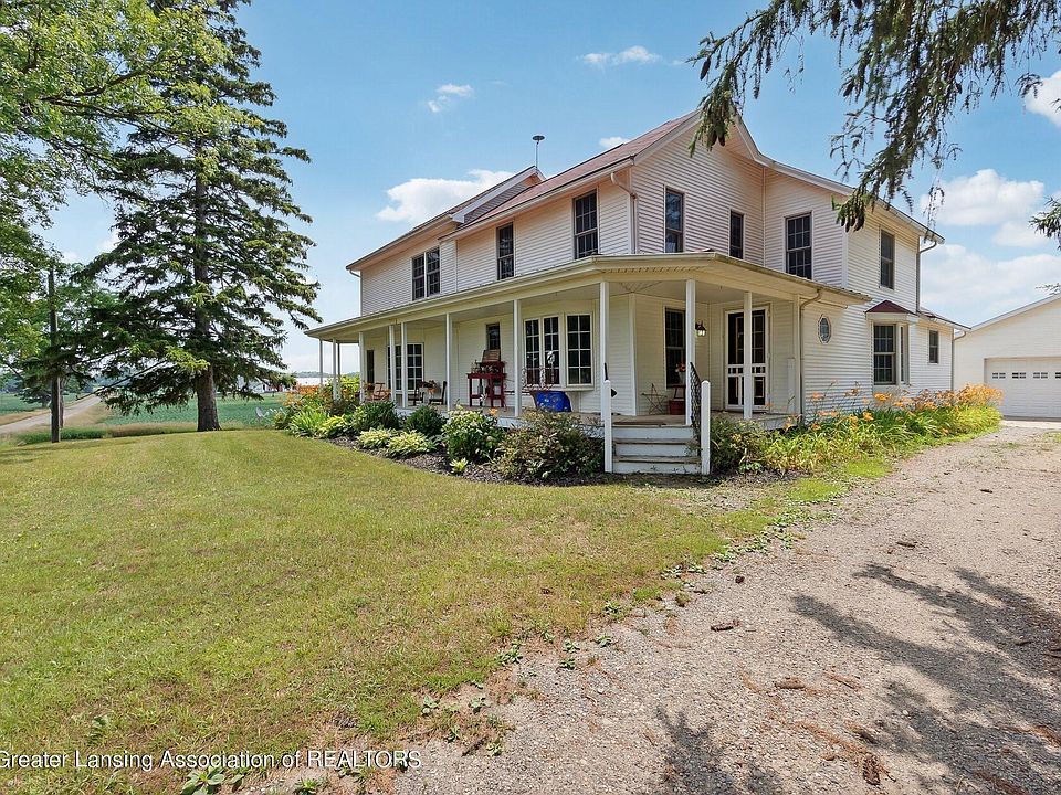 Escape to a charming two-story home in the countryside, surrounded by picturesque views. This lovely retreat features a wrap-around porch with spacious layout that connects the dining, family, and living rooms. Large bay windows in both dining and living rooms. A laundry room is conveniently located on the main floor, adjacent to a generously sized half bath. Upstairs, find a serene primary suite and three additional bedrooms. The finished basement offers additional living space with egress windows. The property includes an oversized two-stall garage with attached heated workshop and covered porch. Additionally, enjoy the rustic barn and shed for storage or creative use. Schedule your showing today!