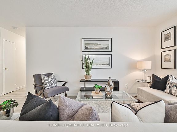 Welcome to this bright and spacious 2-bedroom condo, freshly painted and filled with natural light. Features include newly renovated kitchen and bathroom with quartz countertops, modern vinyl flooring, and all-new light fixtures. Enjoy a generous layout with ample storage and a large private balcony offering an exquisite CN Tower view. Building amenities include an indoor pool, sauna, fitness center, and party room. Prime location close to highways, TTC, schools, parks, and shopping. Move-in ready ideal for first-time buyers, families, or investors. Make this beautiful condo your home for years to come.