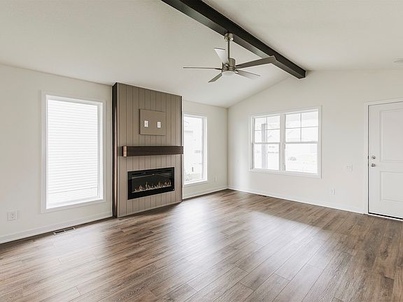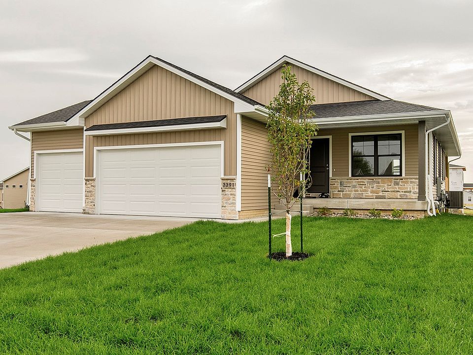 The Luna plan is a spacious, ranch plan that has: 3 Beds, 2 Baths, 1,350 finished SF, 3-car garage w/ openers/keypad, covered porch, covered deck, & 5 yr. tax abatement all on a large corner lot! The main living area has vaulted ceilings w/ wood beam, electric fireplace w/ shiplap, Waterproof LVP flooring in kitchen-living-baths-laundry, Quartz countertops, white cabinets w/ soft close doors, tile backsplash, center island w/ shiplap & SS appliances w/ refrigerator. Master suite is tucked away in back of home by the covered deck & includes fan/light, shiplap bed wall, double vanity, shower, 2 floating shelves above toilet & walk-in closet. Off the garage is the big laundry room w/ mud bench & open stair rail to basement. Main floor also has 2 other bedrooms & guest bath w/ linen closet. Basement is unfinished, but pre-plumbed for bath & ready for future finish. Exterior features include no maintenance vinyl siding, 30 yr. shingles, cultured stone, landscaping, fully sodded yard, & covered deck! 1 year builder warranty & 5-year tax abatement included. Use Preferred lender & get up to $2,000 in closing costs. Development is conveniently located close to parks, trails, shopping & schools. All photos are of actual home.