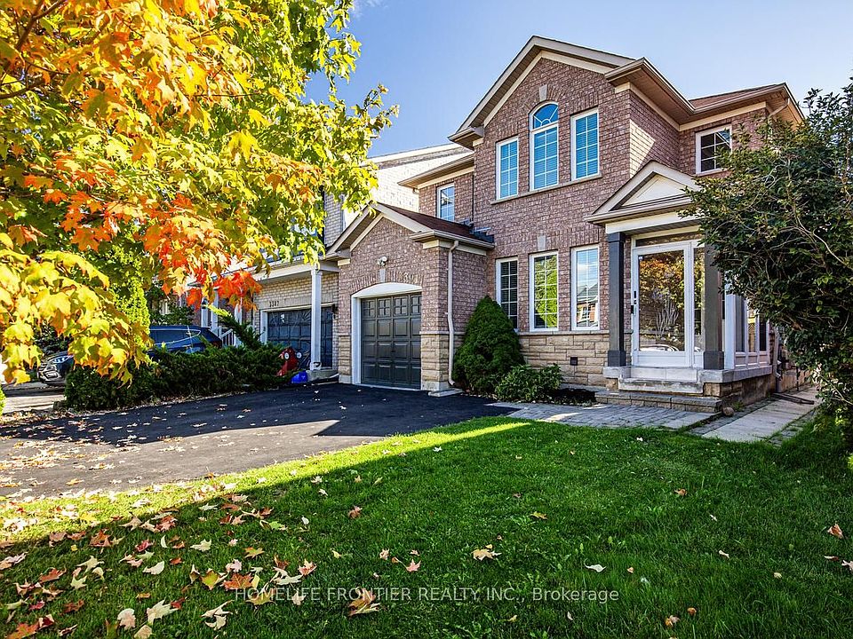 Brick detached homeOpen-concept family roomPicture windowsEat-in kitchenQuartz countersCeramic flooringGlass-enclosed patio