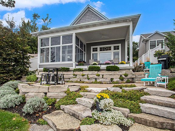 Stunning low bluff Lake Michigan waterfront home. The main floor is an entertainers dream. There is large gourmet kitchen that leads into a cathedral ceiling living room & dining room. Large picture windows welcome in abundant natural light while views of Lake Michigan dance in the background. Upstairs there is a second living space, office, & a large primary bedroom. The basement features a spacious family room that could easily be converted into several bedrooms. On the lake side of the home there is a 3 season room, a porch, several patios, & a built in gas fire pit. Just a few short steps down, & you're standing on one of the most jaw dropping stretches of beach that the entire state of Michigan has to offer. - In documents section on the MLS, the health department has approved the ability to add 2 additonal bedrooms and an additional full bathroom to the existing septic system without any repairs or construction needed.