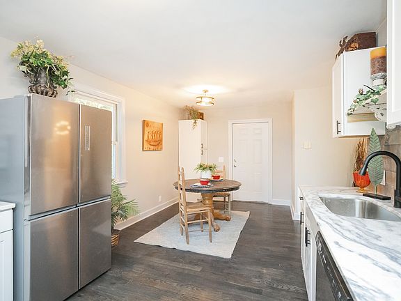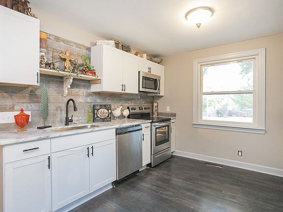 Remodeled brick with spacious open living room with lots of natural light. Hardwood and tile floors, updated kitchen, and baths. Marble kitchen countertops and stainless appliances. Brick patios covered concrete porch on the back—a lovely treed lot. Full basement. This home is a joy to show.