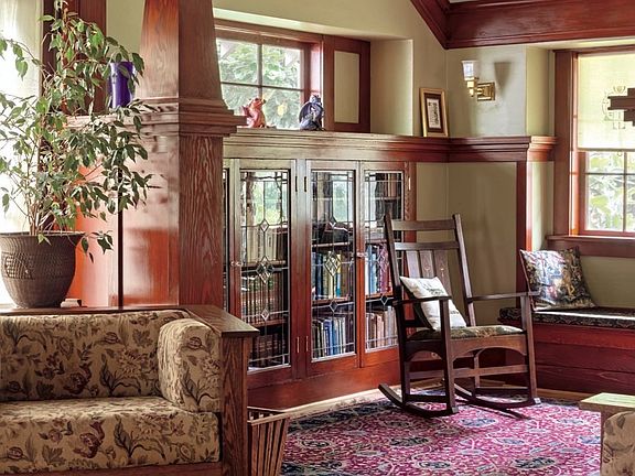 Architectural jewel with original built-ins, French doors & box beam ceilings. A stunning Arts & Crafts bungalow built by Ida McCain in 1912. Formal entry with staircase, grand size rooms on main floor. All of the paint on the woodwork was stripped and the old growth douglas fir was stained. Library room on main. Full bath down in basement. High end kitchen remodel. All 3 bathrooms remodeled in a period style. Large walk-in closet off master bedroom. The internal systems (electrical, plumbing) have been upgraded/replaced. Fully insulated exterior walls and attic (blown in). Laundry hookups in basement and on 2nd floor. New roof, new siding. Porte cochére over driveway. Brand new garage.