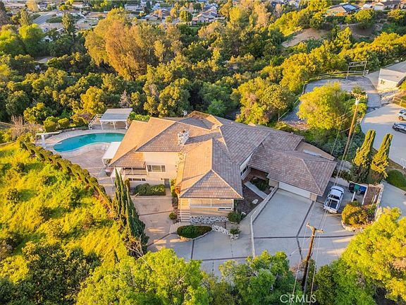 VIEW, VIEW, VIEW. This UNIQUE CUSTOM BUILT HOME nestled on a private street of “ COVINA HILLS”. Sited on 100,544 SF (ALL USABLE LOT) surrounded by citrus and fruit trees. It features 6 bedrooms, 6 baths plus large office with built-in bookshelves (total 5 suits). Large living room with cathedral wood-beamed ceilings, fireplace and has sliding door that open to the large covered patio to overlook the breathtaking city light & mountains VIEW. Upgraded double pane windows, sliding doors and copper plumbing throughout. The eagle (light) concrete tile roof was replaced in 2003. Total 4 A/C units. Gourmet kitchen with stainless steel appliances and center Island. Formal dining room and family room. Huge master suite located on the main floor. Large bonus room located on the lower level with bar plus 2 bedrooms, 2 bathroom can be used as rental unit or extended family with it separate entry/exit. Huge private backyard with pool, covered patio and room for added an additional unit. RV parking. CUL-DE-SAC location. This is an unwind in a country-like and peaceful setting property with full of character. It is truly special. Horse property.