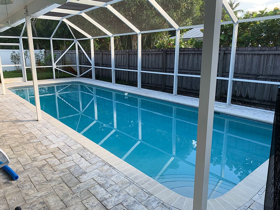 - 3 bedroom 2 bath 2 car garage with screened in pool and aluminum roof - Master has standup shower and guest bath includes bath and shower - Has parking for 20' boat on side of house inside fence - Unfurnished - Granite countertops, stainless steel appliances, and soft close cabinets - Impact windows and doors - Tile and laminate flooring - Pool and lawn maintenance included in rent - 5 minutes to downtown Stuart and 10 minutes to the beach 1 year lease. Owner pays for lawn and pool service. Renter is responsible for water, electric, cable/internet. Small pets considered. Credit and background check required. First month, last month, and security deposit due at signing. Please call/text to inquire or set up a showing.