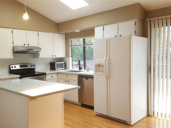 Spacious tri-level home at a quiet Cul-de-sec location with open floor plan. Well maintained house. Large Sky-light kitchen with island kitchen, hardwood floor and slider out to large deck from the eating area. Master suite with vaulted ceiling and large walk in closet. Spacious vaulted living room w/gas fireplace and separated dinning room. Big family/rec room w/built in entertainment area with shelving. New interior paint, newer furnace. Fully fenced yard. Ready for move in.