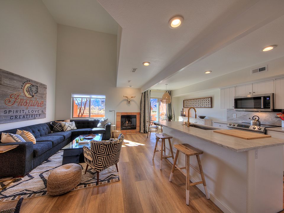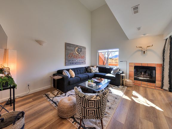 REFINED TOWNHOME ON THE GREEN  This classy townhome has a refined remodel opening up the kitchen and living area to modern standards.  Masterfully designed and decorated with a southwestern boho vibe, comprising an inclusion package with most of the furnishings and artwork included.  Elegant quartz counters and backsplash, desirable wood-grain flooring intermixed with the original Saltillo tile artfully blends these styles together. The vast vaulted ceilings of the living area intrigues the sense of grandeur, while maintaining the cozy appeal. The main level also integrates a bathroom with a bodacious walk-in shower, formal entry, and one-car garage. The upper-level embraces two comfortable and pleasant bedrooms, both with inviting king beds and shared full bathroom. The patio overlooks the Moab Golf Club's 16th hole and the towering Moab Rim- an incredible place to dine and relax. After a long day on the trail, make sure to take a dip in the Castillo del las Rocas community pool!  Already a thriving short-term rental, this exceptional home has the flexibility to be your primary residence, second home, or continued flourishing rental.