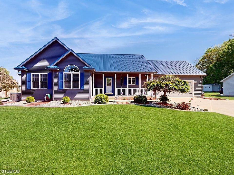 A MUST SEE! MOVE IN READY AND SO MUCH TO OFFER WITH A HOME GYM AND OFFICE SPACE AT A GREAT PRICE! This meticulously maintained 4-bedroom, 2.5-bathroom ranch-style home with a full finished basement is a true gem in the heart of Rolling Prairie. This residence offers an unparalleled living experience without the constraints of HOA or covenants. As you enter the property, you'll immediately notice the meticulous attention to detail and numerous upgrades that set this home apart from the rest. The primary bedroom features a spacious walk-in closet and en-suite bathroom complete with a dual vanity, shower, and indulgent whirlpool tub. Two additional main floor bedrooms are complemented by an updated full bathroom, ensuring comfort and convenience for all occupants. The newly finished basement, completed in 2020, offers even more space for living and entertaining. A spacious recreation room featuring a standalone bar and an 82" LG TV that stay with the home. Additionally, the basement includes a fourth bedroom, a versatile game room or office space, a gym area, and a convenient half bathroom. Updates included are as follows. In 2019 a New Metal Roof, Professional Painting of Interior and Exterior, installed a New Garage Door Opener, Ceramic Tile in the Main Bathroom and Kitchen, Vinyl Floor in Living and Bedrooms, Appliances, Garage Sink, and added the Basement Bathroom. In 2020 Ceramic Tile installed in the Primary Bath, Backsplash in Kitchen, Finished the Basement, New Windows in Primary Bathroom and Second Bedroom, 14x16 shed, and Gazebo. In 2021, added a New Garage Door, Water Softener, Whole House Generac Generator ensuring peach of mind during power outages, Kitchen Sink and Disposal, Furnace, Central AC, and Spalding NBA Basketball Hoop System. In 2022 Electric Water Heater, Custom Made Polycarbonate Window Well Cover, Whole House Water Filtration System, New Tank for Well, & Powered Anode Rod for Water Heater! BRING AN OFFER!