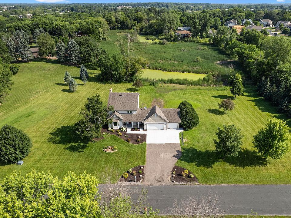 Exceptional 2-story custom-built by Golden Homes nestled on a sprawling 4-acre estate with a pond, mature trees, and an abundance of wildlife. Highly desirable location in the Wayzata school district! Updated landscaping, newly poured concrete and freshly graded backyard provide a perfect canvas for outdoor living and entertaining. The thoughtfully designed interior features Andersen windows, hardwood floors, main level laundry room, formal and informal dining areas, 2 wood-burning fireplaces, finished walk-out lower level. Car enthusiasts & hobbyists will love the 2 attached garages, offering an impressive total of 6 stalls between the upper & lower levels and tons of storage space for all of your outdoor toys and equipment. Organization is a breeze with many closets and built-in cabinetry throughout the home. The large primary bedroom suite features a generous walk-in closet and a private ensuite with 2 large vanities and 3/4 bath. This Golden Homes masterpiece offers custom craftsmanship, and a lifestyle of comfort, and tranquility. Don't miss the opportunity to make this dream home your reality!